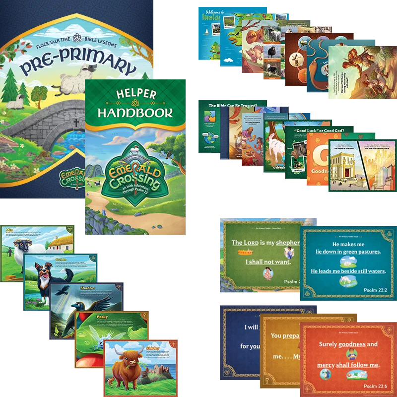 Each kit includes the age-appropriate teacher guide, animal pal posters, memory verse posters, teaching posters, and a Helper Handbook. Ages 4-6