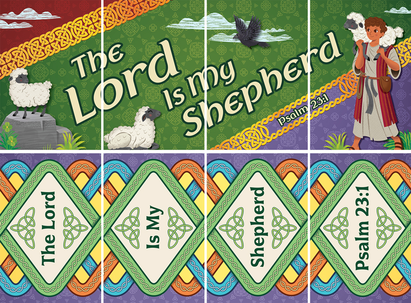 This scene setter features the beginning of the theme verse. One side features a vertical orientation for those who want to hang the panels from the ceiling. The other side features a horizontal orientation for mounting on a wall. Or orient them any way you wish! Set of 4 panels. Each panel is approximately 62.6 x 42.3 in. (1590 x 1074 mm). Total size is approximately 169.2 x 62.6 in. Shipped in rolls. Non returnable.