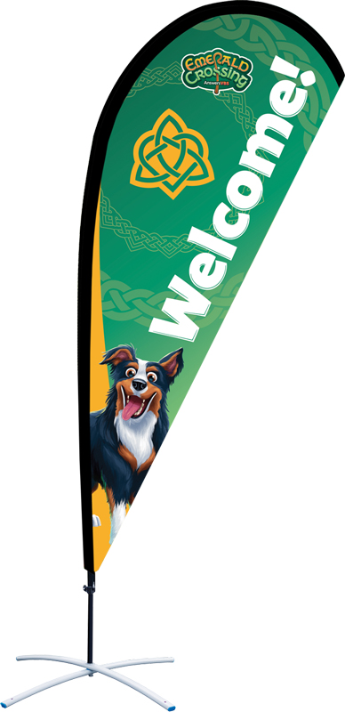 Welcome kids to your VBS with this fabric banner and stand. Almost six feet tall! Stand is reusable—save it for next year! 26 x 67 in. flag plus 8 in. stand.