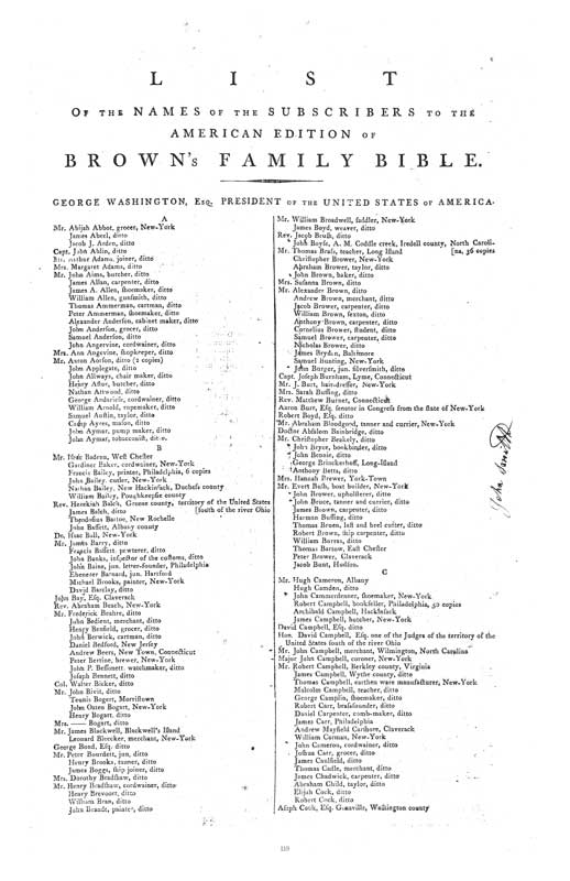 The 1792 edition of Brown’s Bible, retitled for modern readers as The Forgotten George Washington Bible, prominently included President George Washington as the first of 1,279 “subscribers” and had a great impact on our nation in its early years.