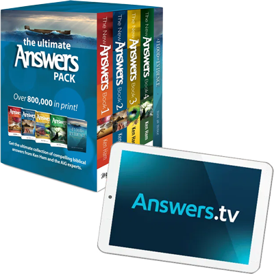 Get the ultimate collection of compelling biblical answers from Ken Ham and the AiG experts, plus a one-year subscription to Answers TV!